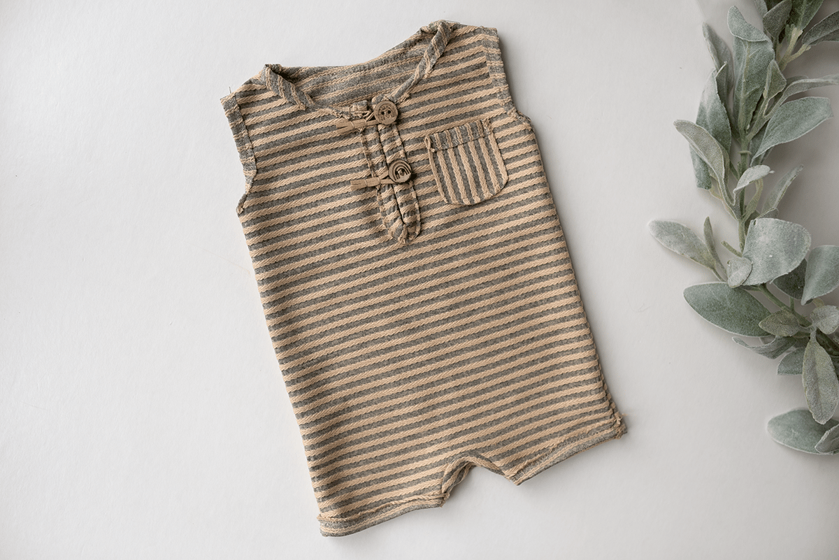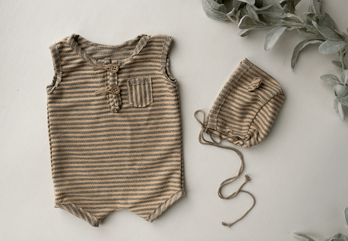 A sweet bear set made of a neutral striped fabric, perfect for little boys! Matching pillow available.