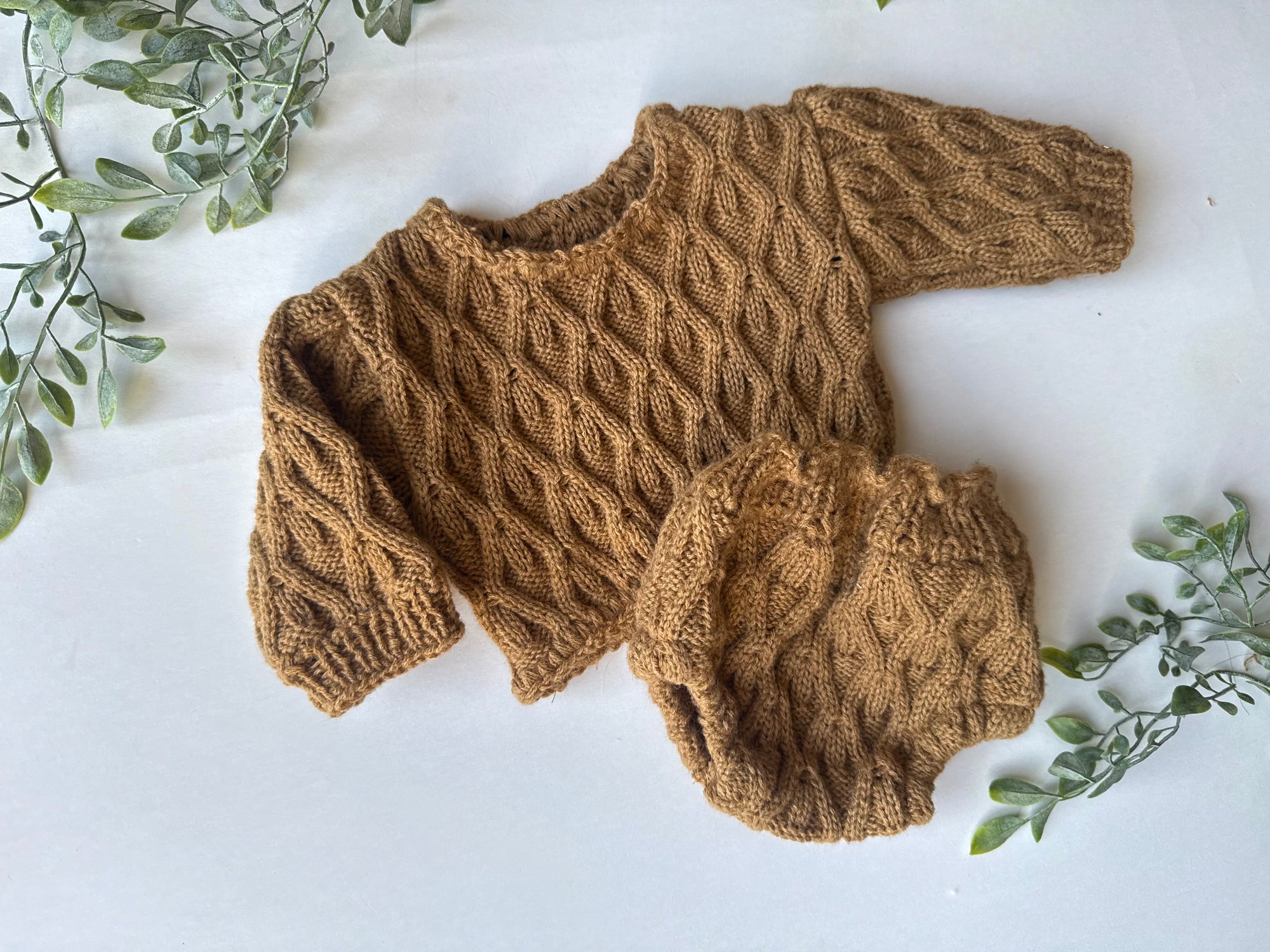 A lovely cable-knit outfit with a beautiful texture. Perfect for little milestones!