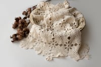 A crochet-like layer made of a soft fabric with a floral design.