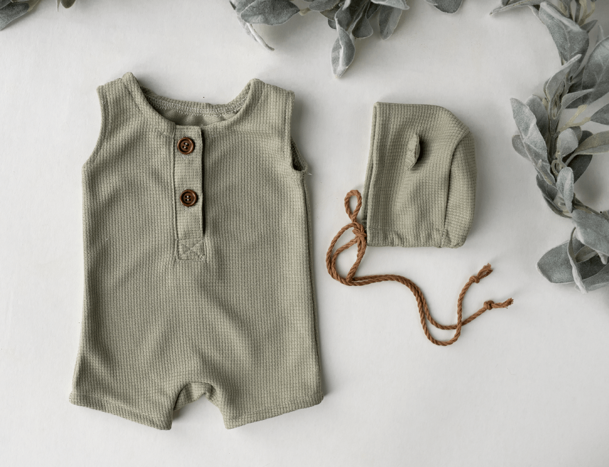 A cute bear romper set made of a lovely fabric, perfect for little boys!